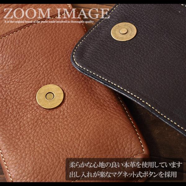 キメが細かくとても柔らかくて肌触りのいい上質のカーフスキン(子牛の革)を使用し、革職人がハンドメイドで製作しています。シンプルで落ち着いたデザインで、大きめタイプのスマートフォンもしっかりと収納できます。