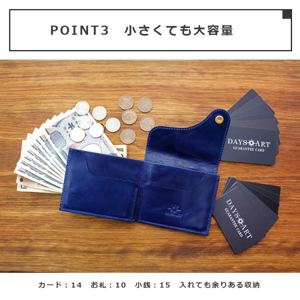 上質なレザーを使用してハンドメイドで製作したデイズアートオリジナルの2つ折り財布です。お札、小銭、カード収納はボタンやファスナーのないシンプルな構造となっていることで取り出しやすく、厚みが出ないようにになっています。