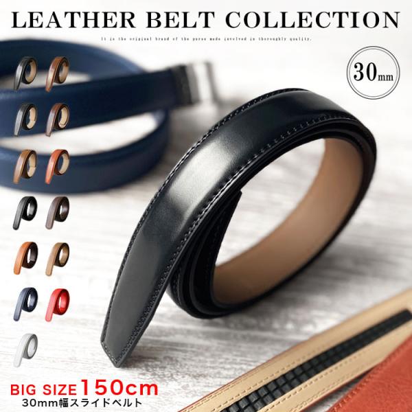 ベルト 150cm ロングサイズ クリックベルト 幅30mm ベルトのみ バックルなし メンズ 牛革 オートロック 無段階調整 替えベルト