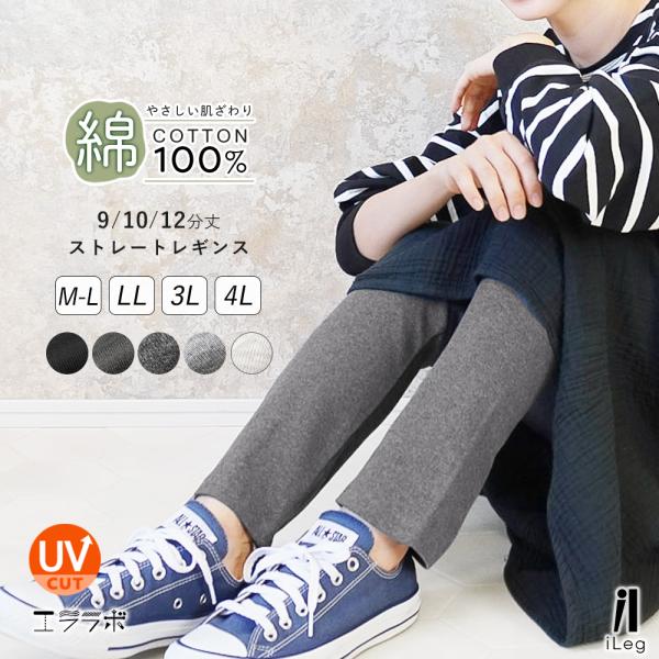 レギンス 綿100% レディース 9分丈 10分丈 12分丈 ゆったり UVカット 大きいサイズ 3L 4L ボトムス スパッツ 綿 コットン アトピー 敏感肌 ロング iLeg *y3-1t