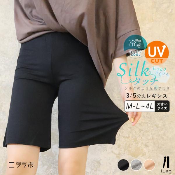 レギンス レディース 夏 7分丈 5分丈 涼しい 薄手 UVカット 夏用 大きいサイズ スパッツ インナー 股ずれ防止 ハーフレギンス iLeg シルクタッチ *1*2-3t *y3-4t