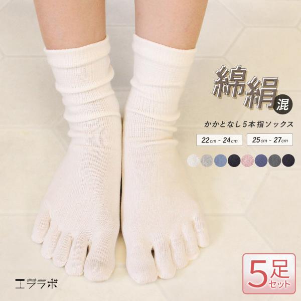 5足セット 5本指ソックス シルク コットン かかとなし 五本指 靴下 セット ソックス 5本指 絹 綿 大きいサイズ 22cm 25cm 夏 冬 暖か 婦人 紳士 *y3-1t