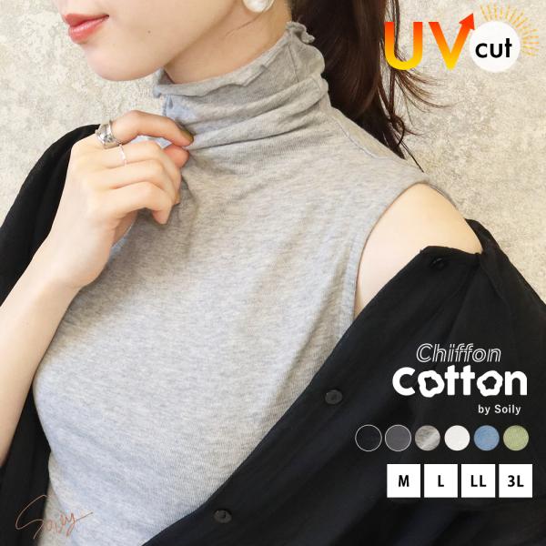ハイネック レディース 綿 薄手 インナー ノースリーブ 大きいサ イズ UV シフォンコットン トップス シアー 春夏 タートル 無地 *1 *2-2t *y3-3t