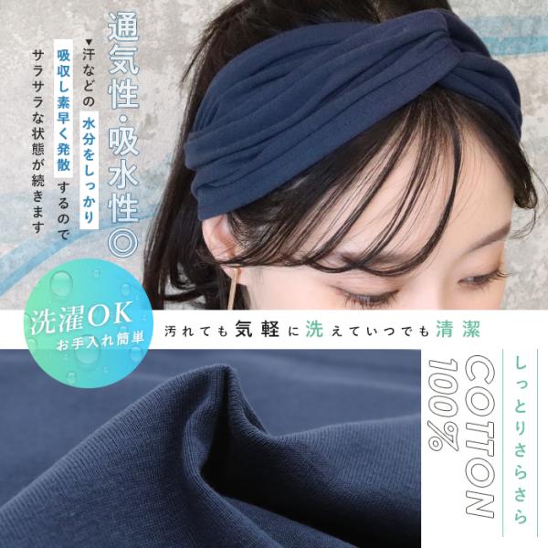 ヘアバンド おしゃれ かわいい レディース 綿100% ヘアターバンド コットン 無地 シンプル 洗える ターバン 大人 ナチュラル 30代 40代 Soily *2-2t *y3-4t