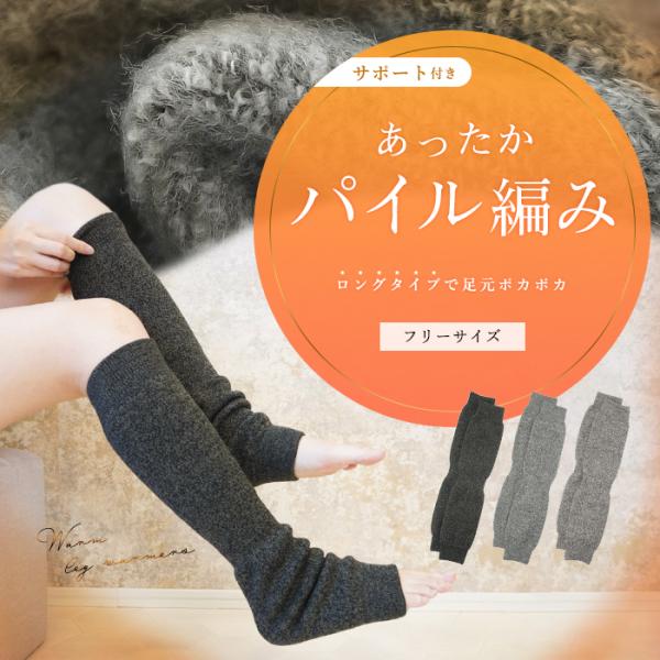 レッグウォーマー 冬用 裏起毛 厚手 遠赤外線 パイル編み ロング 膝上 サポート あったかい 暖かい レディース メンズ 保温 防寒 冷え取り 遠赤加工 *2*y3-2t