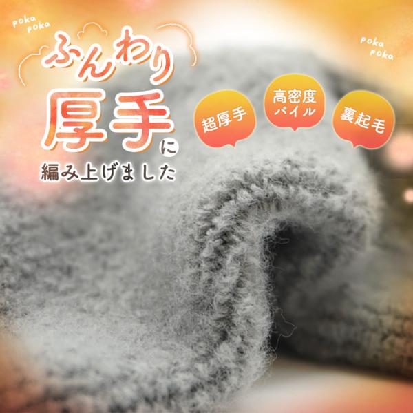 履き口ゆったりな 裏起毛パイル編み 厚手クルーソックス