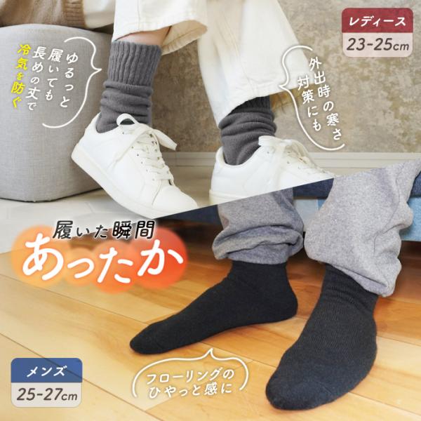 裏起毛 靴下 ソックス レディース メンズ 冬用 暖かい あったかい 裏パイル 履き口 ゆったり リブ 厚手 クルーソックス 防寒 秋冬 くつ下 iLegH *2*y3-2t