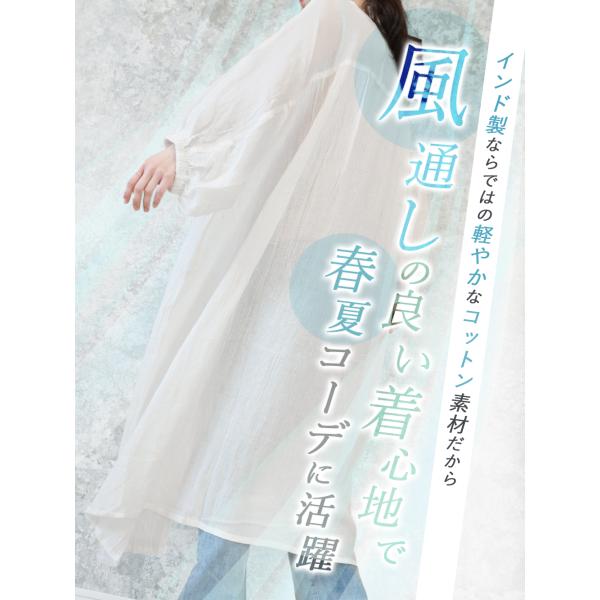 インド製ならではの軽やかなコットン素材と、風通しの良い着心地で、春夏コーデに活躍するロングワンピースです。