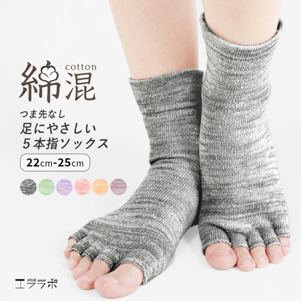 5本指靴下 レディース 綿 コットン 五本指ソックス 指なし つま先なし トゥレス 絹 杢 シルク インナーソックス 指先なし 冷え取り おしゃれ *2-5t*y3-8t