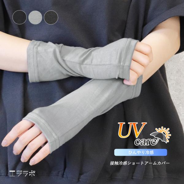 アームカバー ショート丈 接触冷感 UVケア 指穴付き 23cm フィットタイプ ストレッチ 手首が隠れる UV対策 涼しい スポーツ *1-3t *2-9t *y3-12t