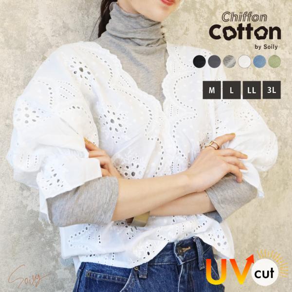 ハイネック レディース 綿 薄手 インナー 7分袖 大きいサイズ UV シフォンコットン トップス シアー 春夏 タートル 紫外線 日焼け防止 無地 *1 *2-2t