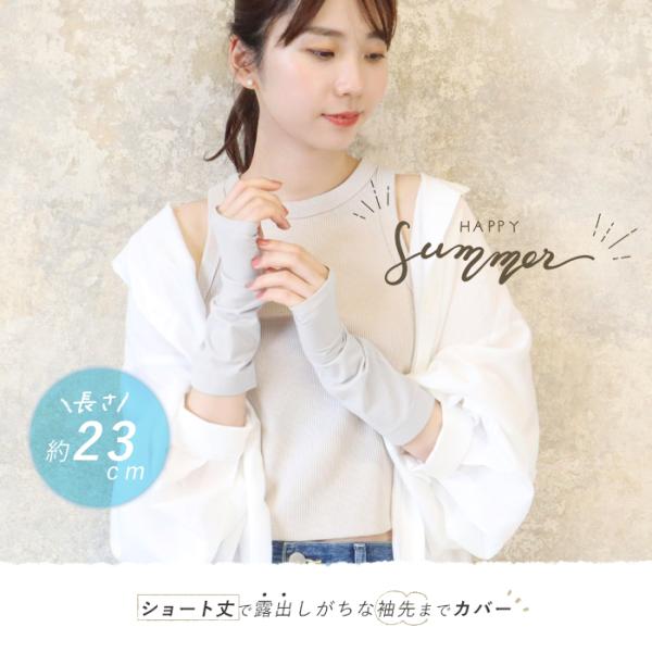 アームカバー ショート丈 接触冷感 UVケア 指穴付き 23cm フィットタイプ ストレッチ 手首が隠れる UV対策 涼しい スポーツ *1-3t *2-9t *y3-12t