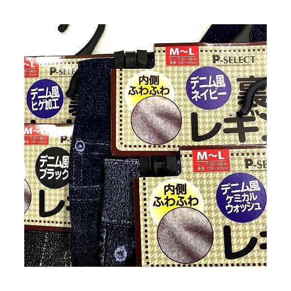 レギンス 婦人裏起毛10分丈 デニム風プリント柄 サイズM−L・L−LL寸 内側ふわふわ暖かい