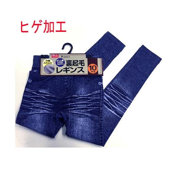 裏起毛10分丈婦人レギンス デニム風プリント柄内側ふわふわ