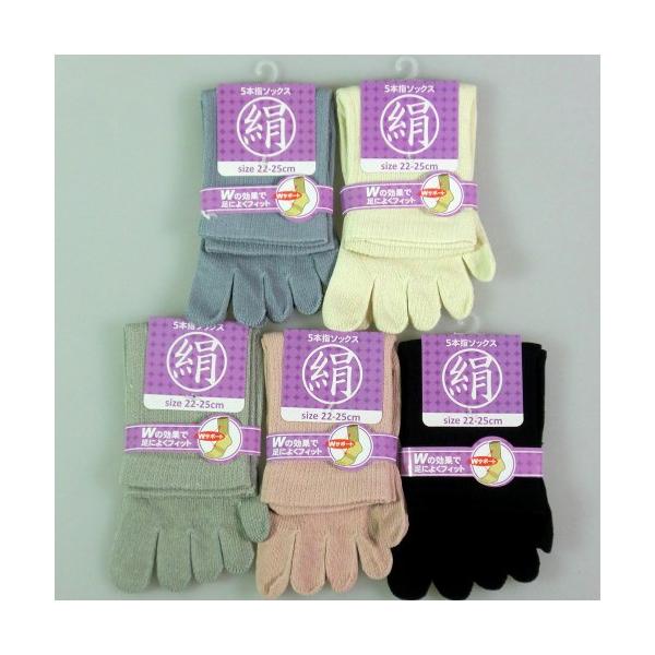 婦人靴下 シルク混 靴下 レディース 婦人 シルク混5本指靴下