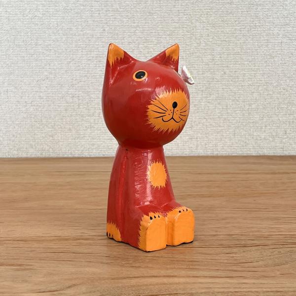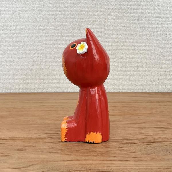 バリ猫 花さしネコ 17cm レッド 木彫りの置物 バリネコ オブジェ 猫の置物 ねこ キャット アジアン雑貨 バリ雑貨 010286