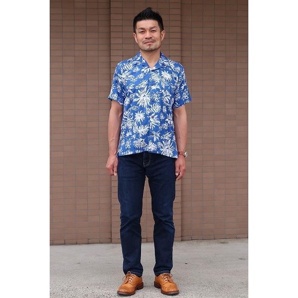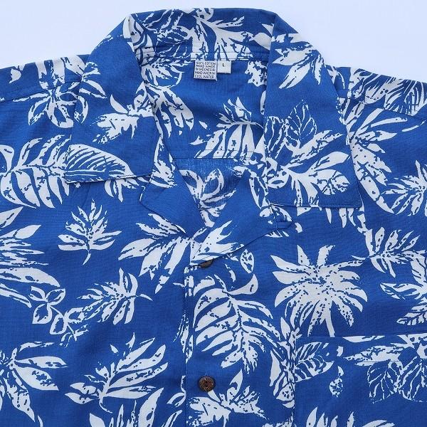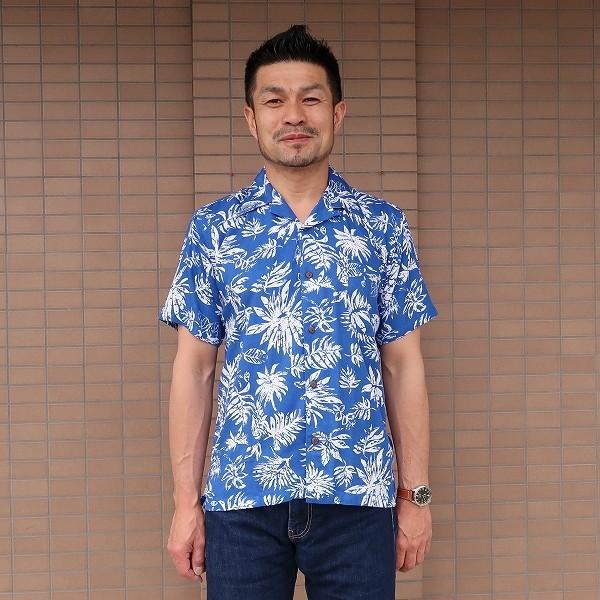 アロハシャツ 半袖シャツ バティックシャツ レーヨン ブルー パームリーフ 150209 【メール便OK】