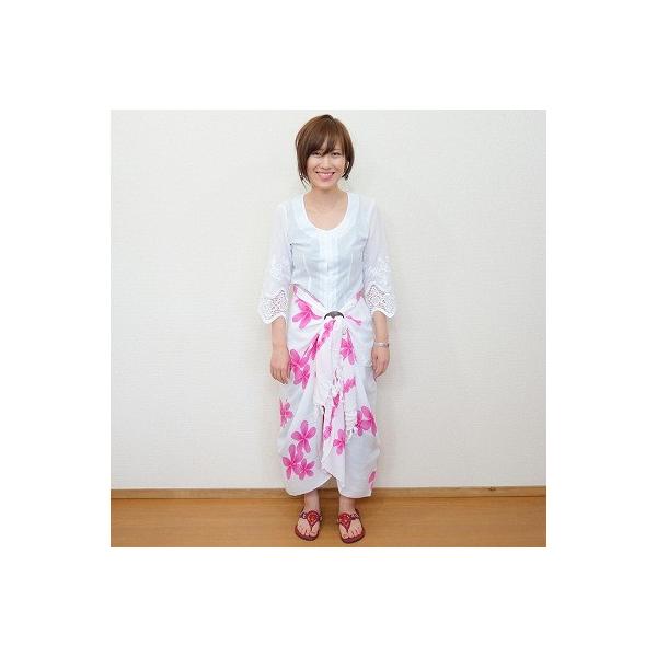 パレオ マルチファブリック サロン フリンジ 115X165 ハイビスカス&パームリーフ&プルメリア ブルー【メール便OK】190221