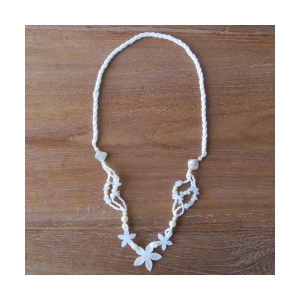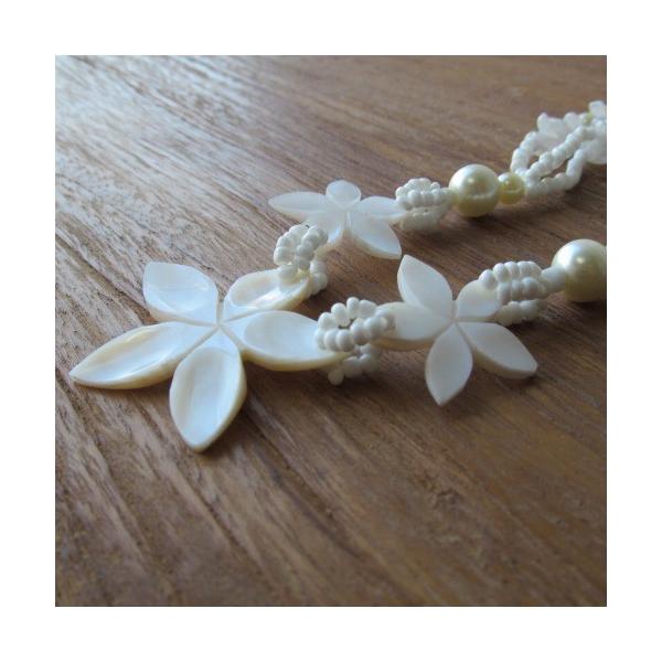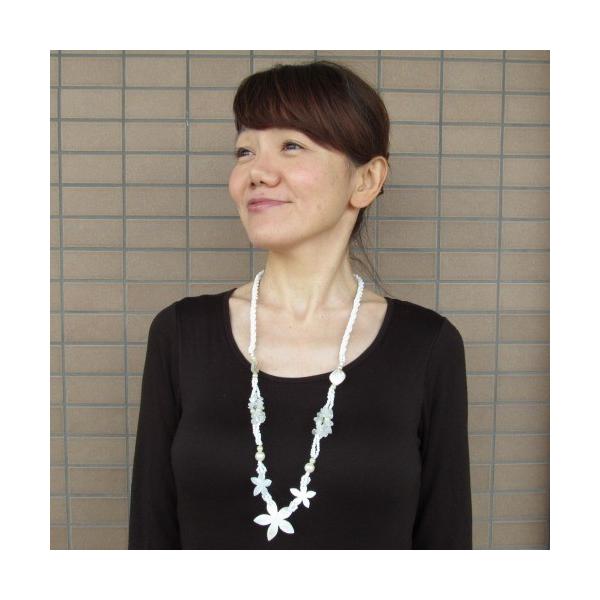 シェルビーズネックレス トリプル プルメリア フラワー ロング【メール便OK】【リゾート ペンダント 首飾り アクセサリー 花】YSA-220540