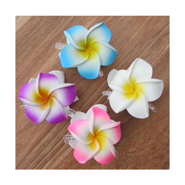 プルメリア 花のヘアクリップ ウレタン 7cm 4COLORS ピンク ホワイト ブルー パープル ハワイアン リゾート アクセサリー 220763