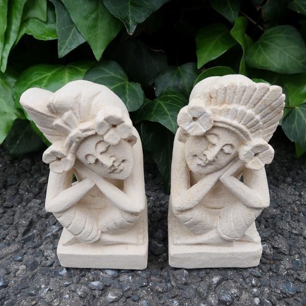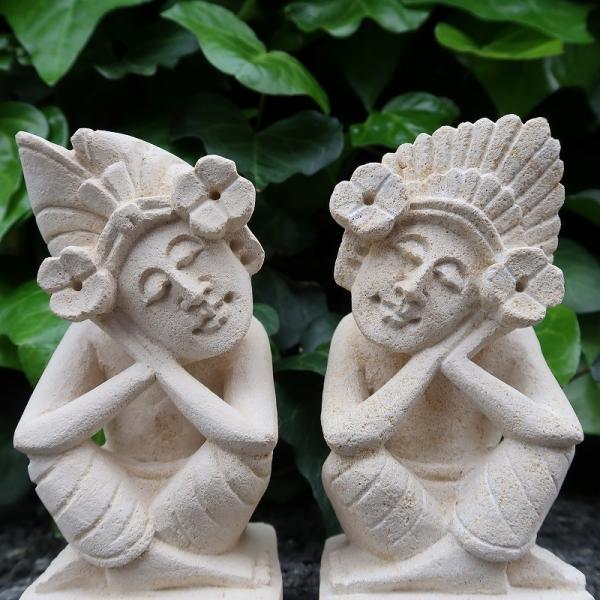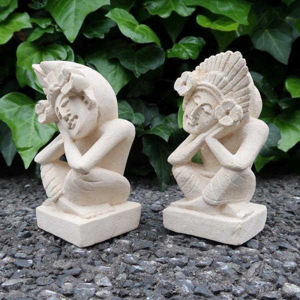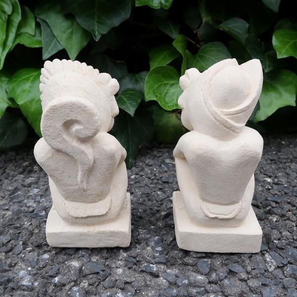 バリニーズカップル プリミティブ石像人形15cm 男女2体セット パラスストーン オブジェ 置物 ガーデンオーナメント 250511