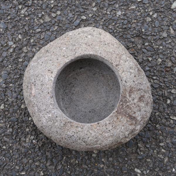 天然石をくり抜いた睡蓮鉢 リバーストーン 丸鉢 27〜29cm 花器 つくばい すいれん鉢 メダカ鉢 めだか鉢 石材 坪庭 YSA-250885
