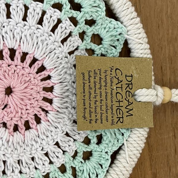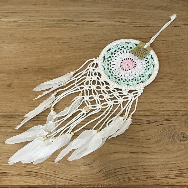 ドリームキャッチャー マクラメ 17cm ペパーミント&ピンク アメリカン雑貨 タペストリー インディアン【メール便Ok】330925