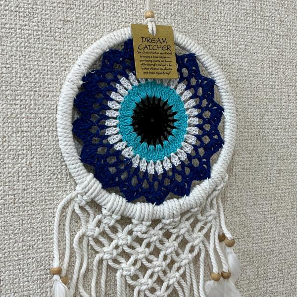 ドリームキャッチャー マクラメ 17cm ブルー ナザールボンジュウ アメリカン雑貨 タペストリー インディアン【メール便OK】330927