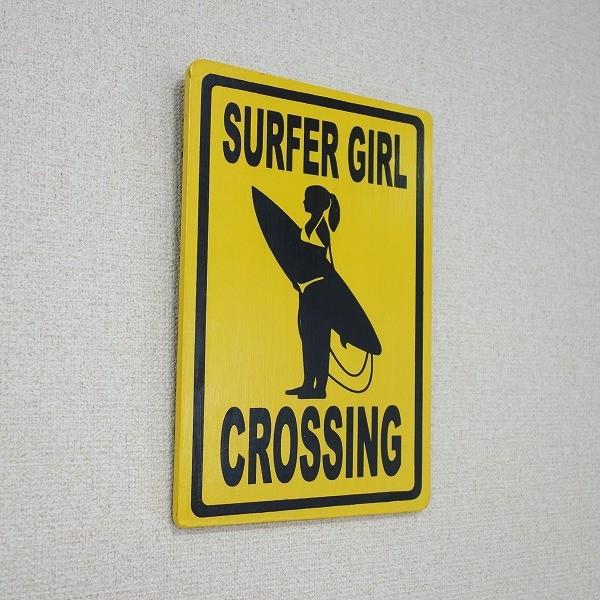 ハワイアン雑貨 インテリア サーフィン サーファー 女の子 看板 標識 イエロー プレゼント ギフト