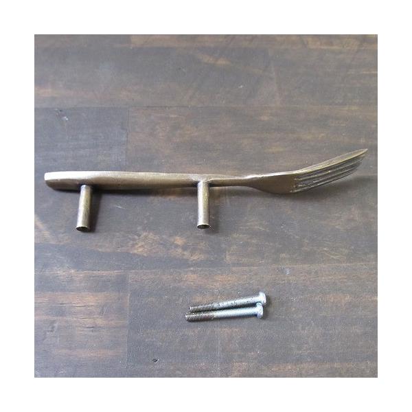 フォーク 真鍮製 家具の取っ手 引出し取っ手 開き戸取っ手 ハンドル アンティークゴールド 金具 C-32【メール便OK】370106