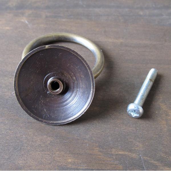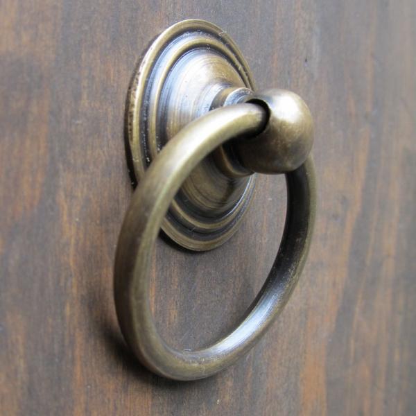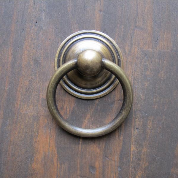 家具の取っ手 真鍮製 アンティークゴールド リングハンドル P-016 チェスト 引出し取っ手 タンス取っ手 金具 DIY 【メール便OK】370206
