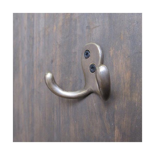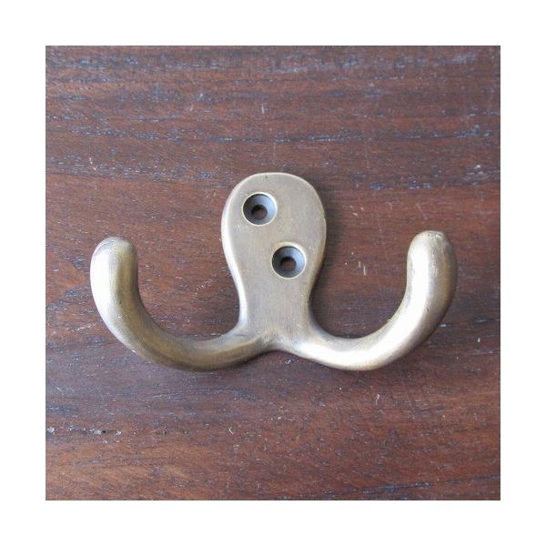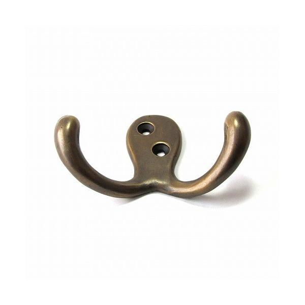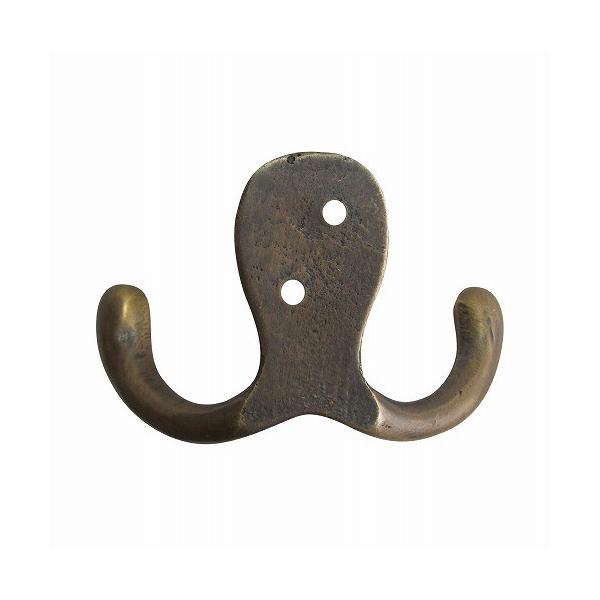 壁掛けJ字ダブルフック 真鍮製 アンティーク調 U-031 Wフック 二股フック 吊り下げ金具 吊り下げフック DIY 【メール便OK】370638