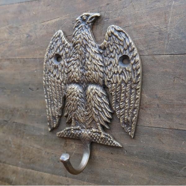 イーグル フック 真鍮製 アンティーク調 壁掛け吊り下げフック U-111 鷹 鳶 隼アイアン レトロ調 DIY【メール便OK】370675