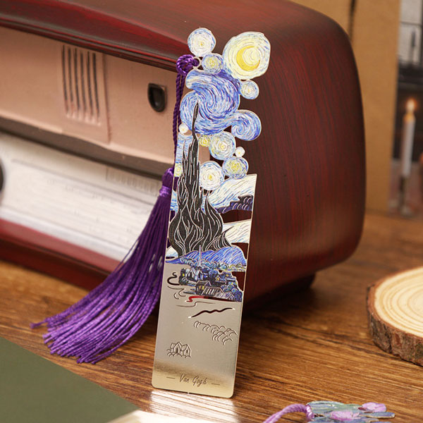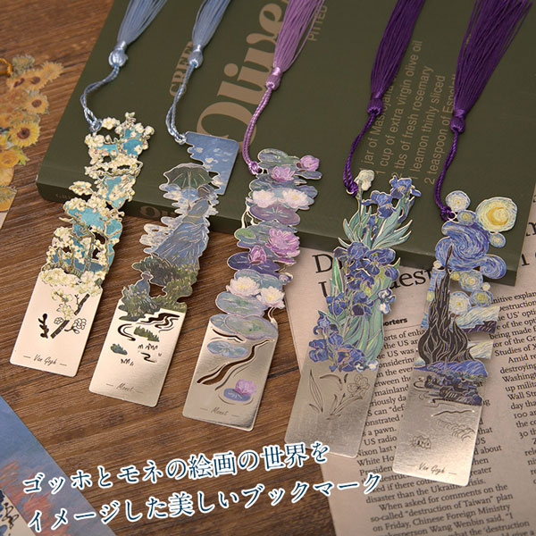 【メール便発送OK】美しい名画の世界が広がる 栞 揺れる目印付き 可愛いしおり メタルブックマーカー 全4デザイン 水や汚れに強い金属製 プレゼントに