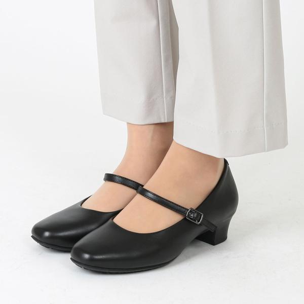 Lady worker レディワーカー パンプス レディース レディス スクエアトゥ ストラップ 3E 黒 オフィス LO-18590 アシックス商事