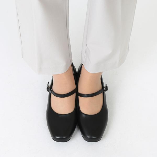 スクエアトゥ、3E相当の約3.5cmヒールの黒パンプス