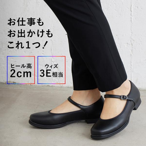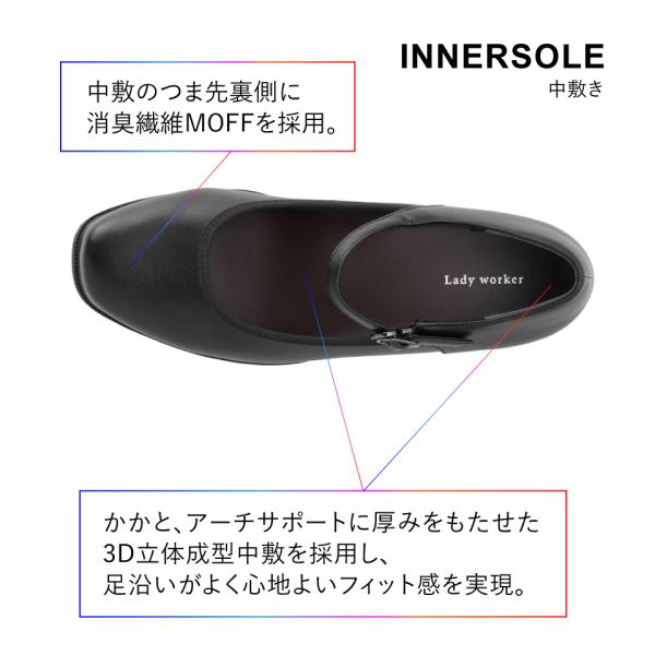 Lady worker レディワーカー 黒パンプス レディス レディース 通勤 ローヒール ストラップ 3E相当 通販限定 LO-18650 アシックス商事 0417gw
