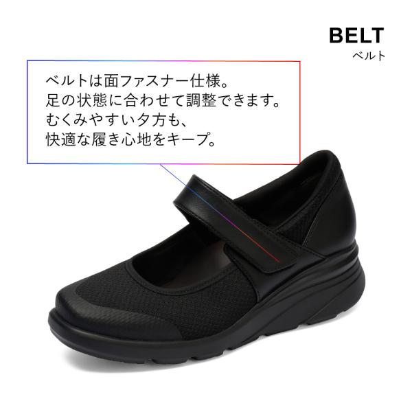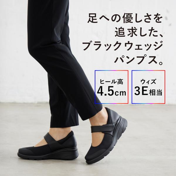 Lady worker レディワーカー 黒パンプス レディス レディース 仕事 通勤 ウェッジ ベルト 3E相当 通販限定 LO-18690 アシックス商事 0417gw