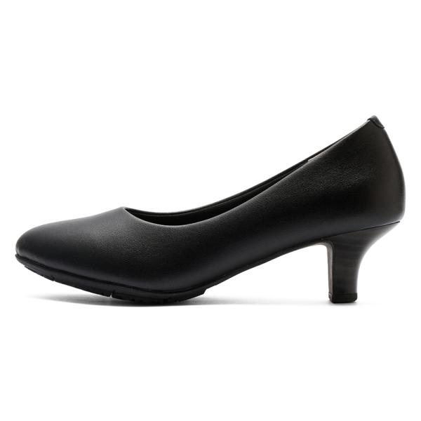 ・約5cmヒールのラウンドトゥの黒パンプス。
