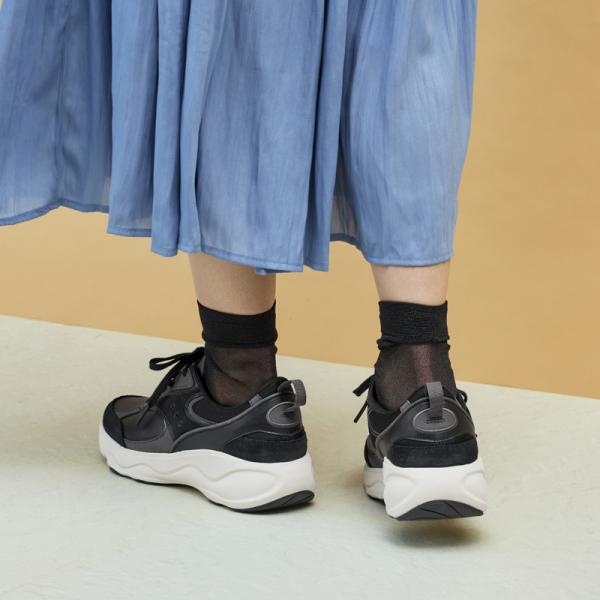 アッパーはストレッチ性に優れた人工皮革を中心に、複数の素材使いで遊び心を演出。