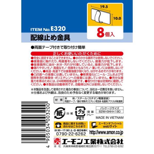 配線止め金具 黒 8個セット 10×19.5mm 配線コードの固定!小物掛けに!(No.E320)