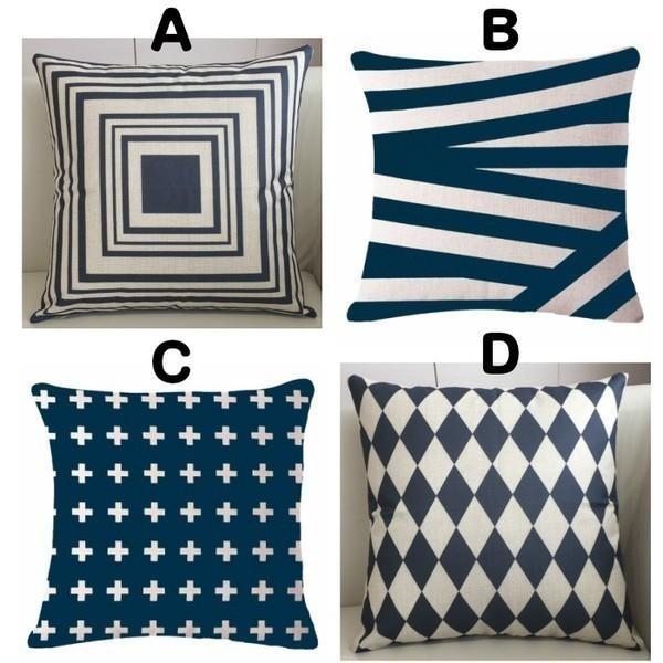 インディゴブルー クッションカバー 北欧 45×45 おしゃれ 白黒 西海岸 モノトーン モダン グレー メール便対応 送料無料