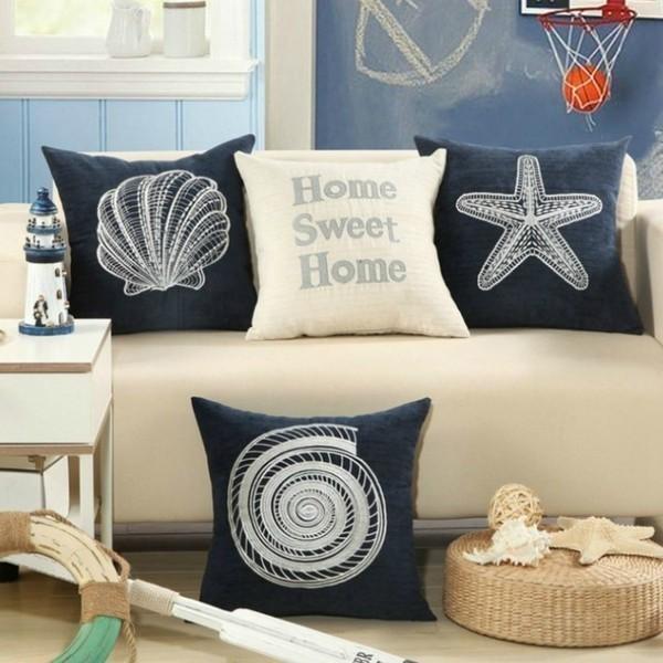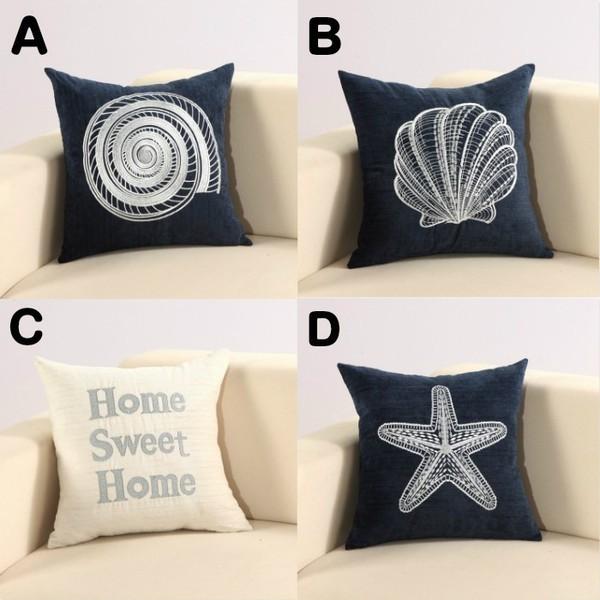 送料無料 刺繍SEA クッションカバー 北欧 45×45 西海岸