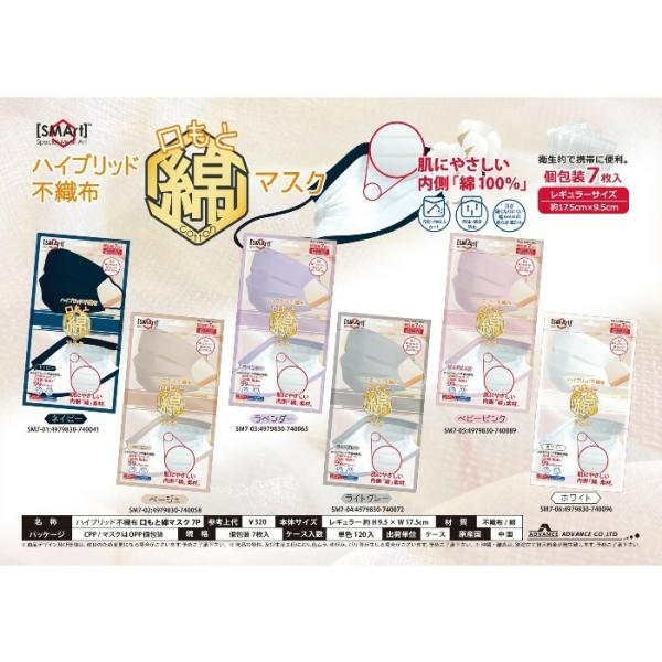 SMArt ハイブリッド 口もと綿マスク 7枚入 コットン 個包装 血色マスク カラーマスク 使い捨て 大人用 男女兼用 高品質フィルター 花粉 咳 白 ホワイト 防塵