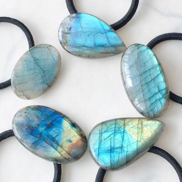 ラブラドライト ヘアゴム ルース 原石 タンブル 天然石 パワーストーン カボション 一点もの 一点物 ヘアアクセ アクセサリー メール便 送料無料