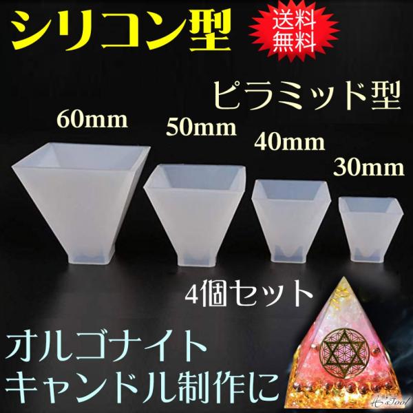 シリコンモールド 4個 送料無料 レジン 型 ピラミッド オルゴナイト UVレジン 三角錐 型枠 セット 6cm 5cm 4cm 3cm シリコン キャンドル 手作り ハンドメイド