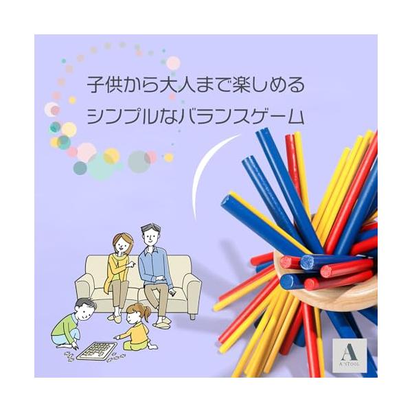 スティックを1本づつ抜く作業を通して、全体を見てバランスを考える、先を予想する、想像する、空間を考える、知育玩具です。指先を使うので脳トレにもなります。