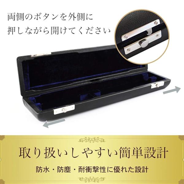 送料無料 ! フルートケース 17穴 H管 フルート 収納 ケース 持ち運び ハードケース 黒 レザー調 木管楽器 収納 保管 衝撃 湿気 保護 保管 高級感 PUレザー 黒色