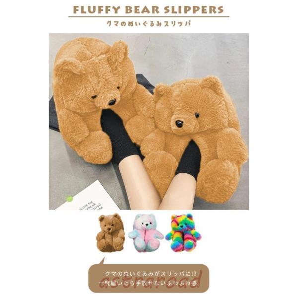 アニマル スリッパ クマ ルームシューズ ぬいぐるみ ふわふわ 暖かい 冷え対策 もこもこ ファー 毛皮 冬 室内 足ポカ