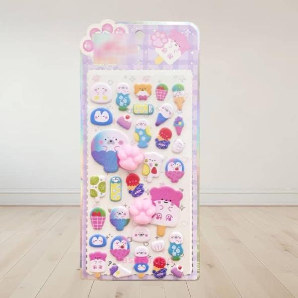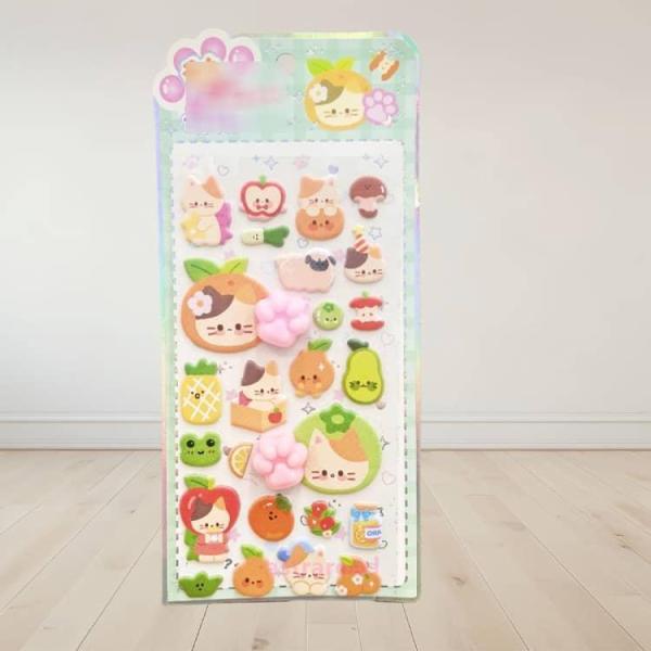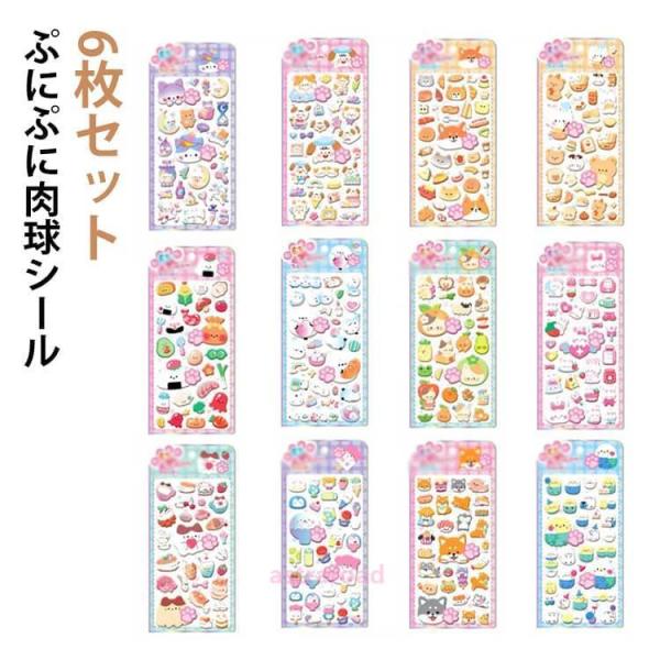 にくきゅう キャラクター 泡ステッカー シール デコ スクイーズ ねこ 6枚セット 3D ぷにぷに 猫 犬 立体 可愛い シール 肉球 ステッカー デ